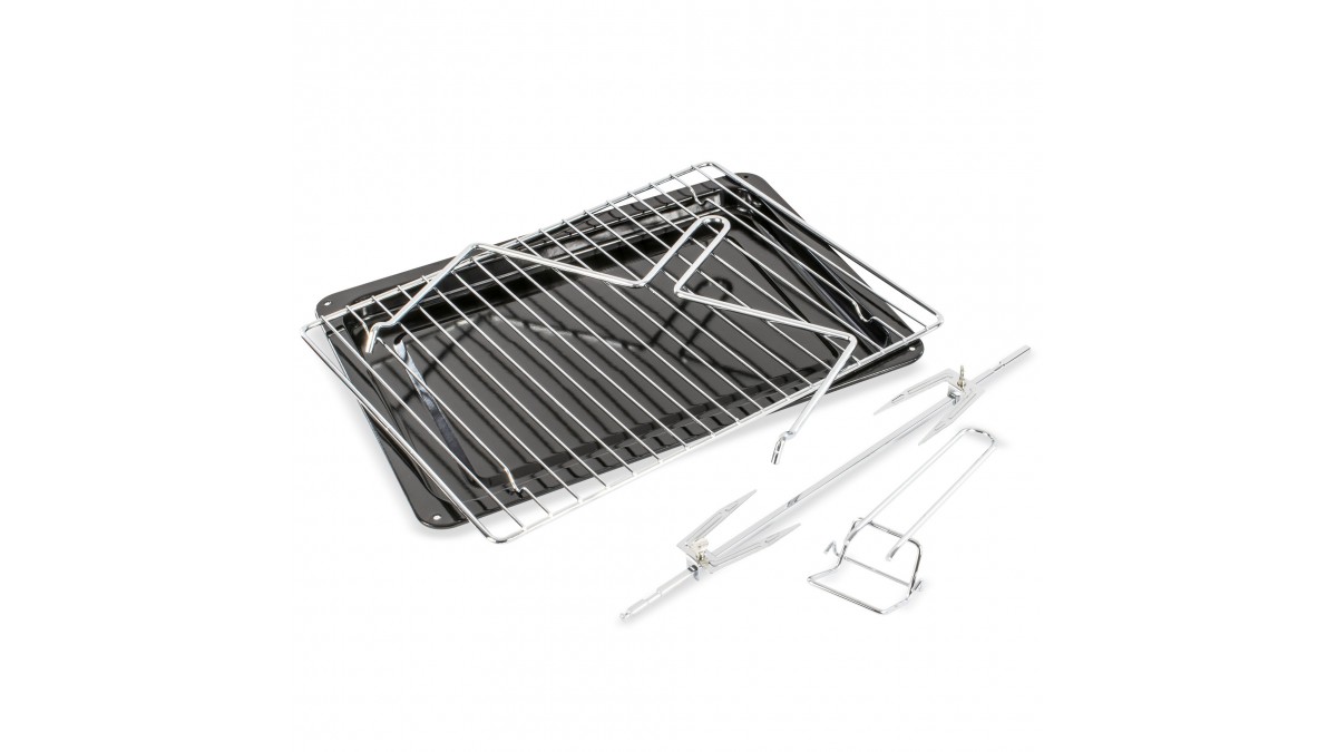 Accesorii: rotisor cu maner, gratar cromat si tava de copt.