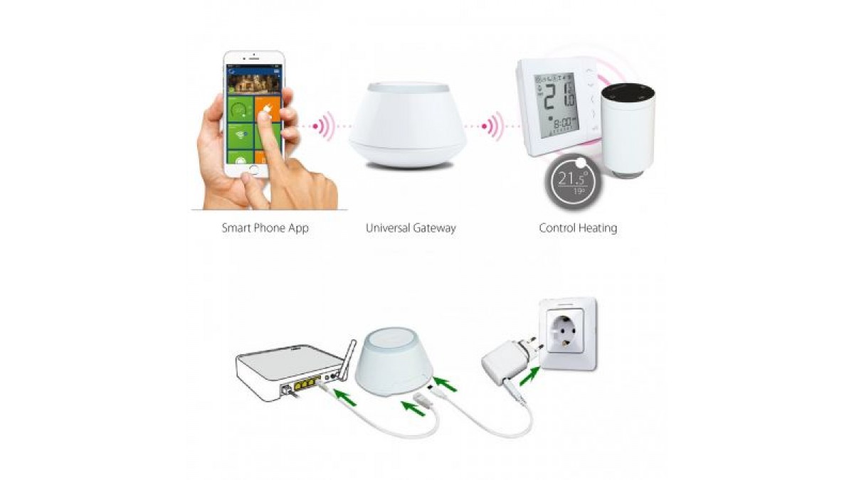 Gateway-ul Salus UGE600 este cea mai importanta piesa a sistemului iT600 Smart Home, avand rol de coordonator al sistemului. Acesta face posibil controlul prin Internet al dispozitivelor Salus compatibile. Cu ajutorul lui, componentele sistemului pot fi configurate si controlate direct din aplicatie, de pe smartphone, tableta sau PC.