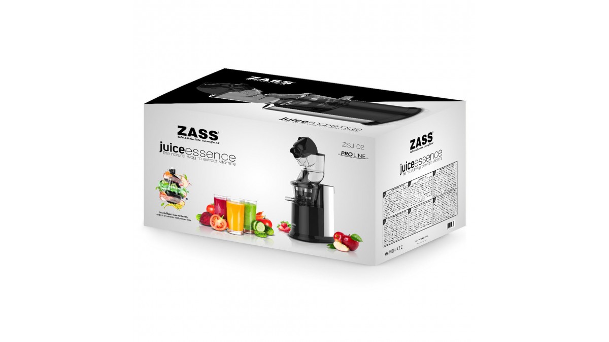 Storcătorul Zass ZSJ 02 din gama ProLine poate presa la rece toate tipurile de fructe, legume, fibre, grâu verde sau soia oferindu-ţi energie şi forţa necesară de-a lungul zilei.